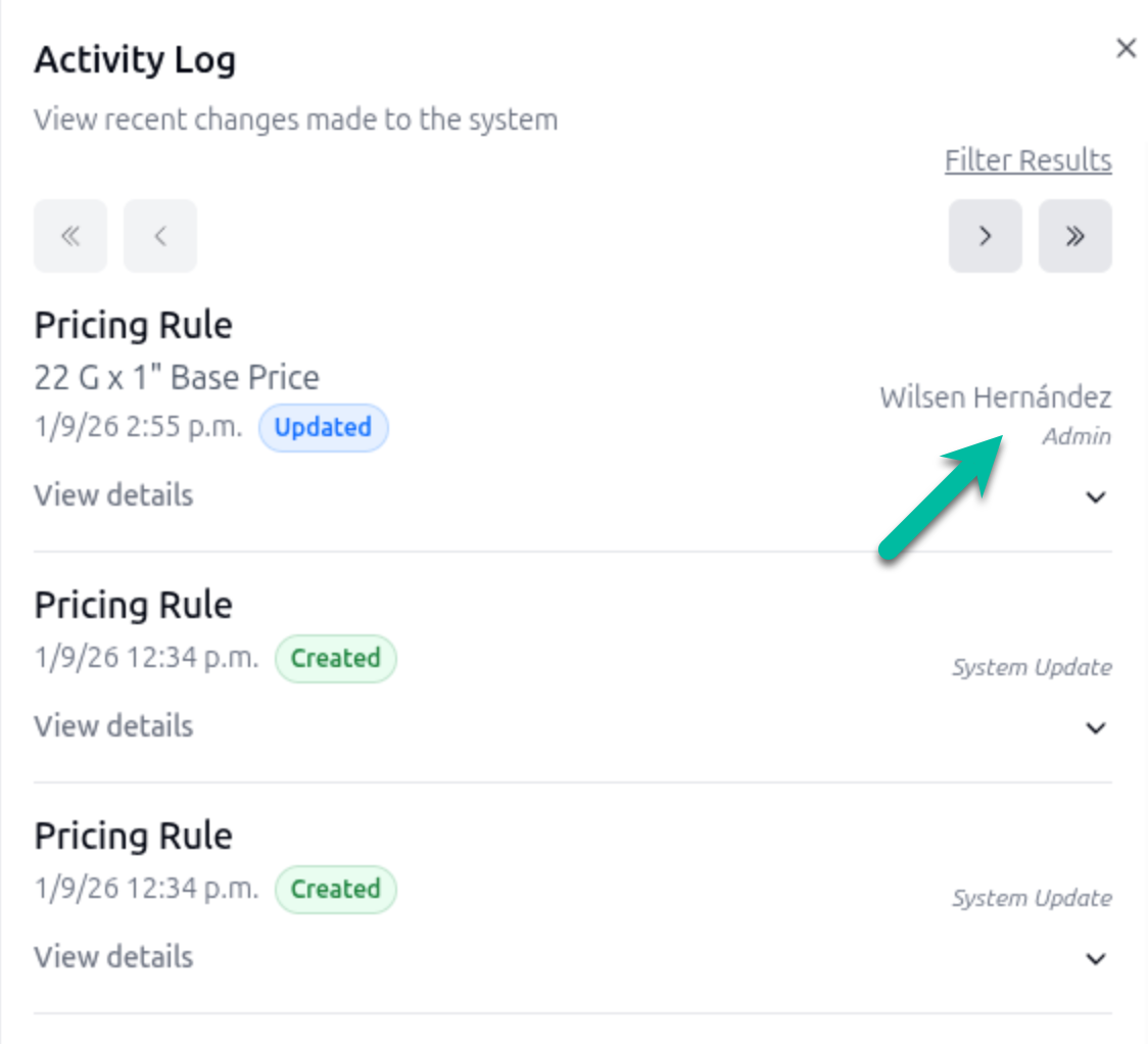 Corrected pricing rule activity logs so entries reflect the correct pharmacy and user actions.