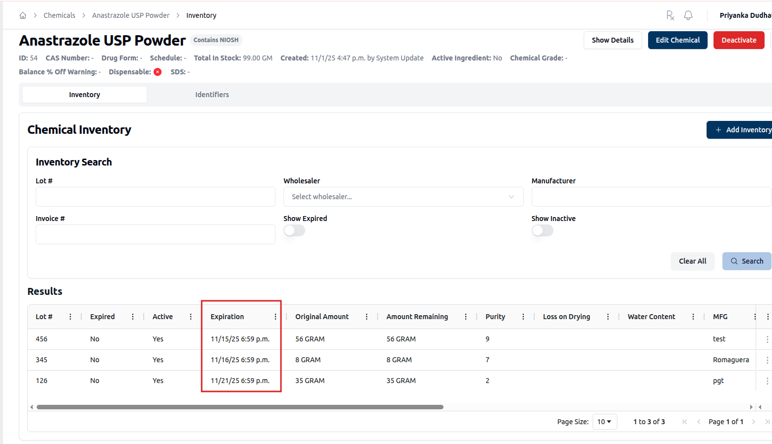 Fixed a date formatting issue for Expiration Dates in Chemical Inventory