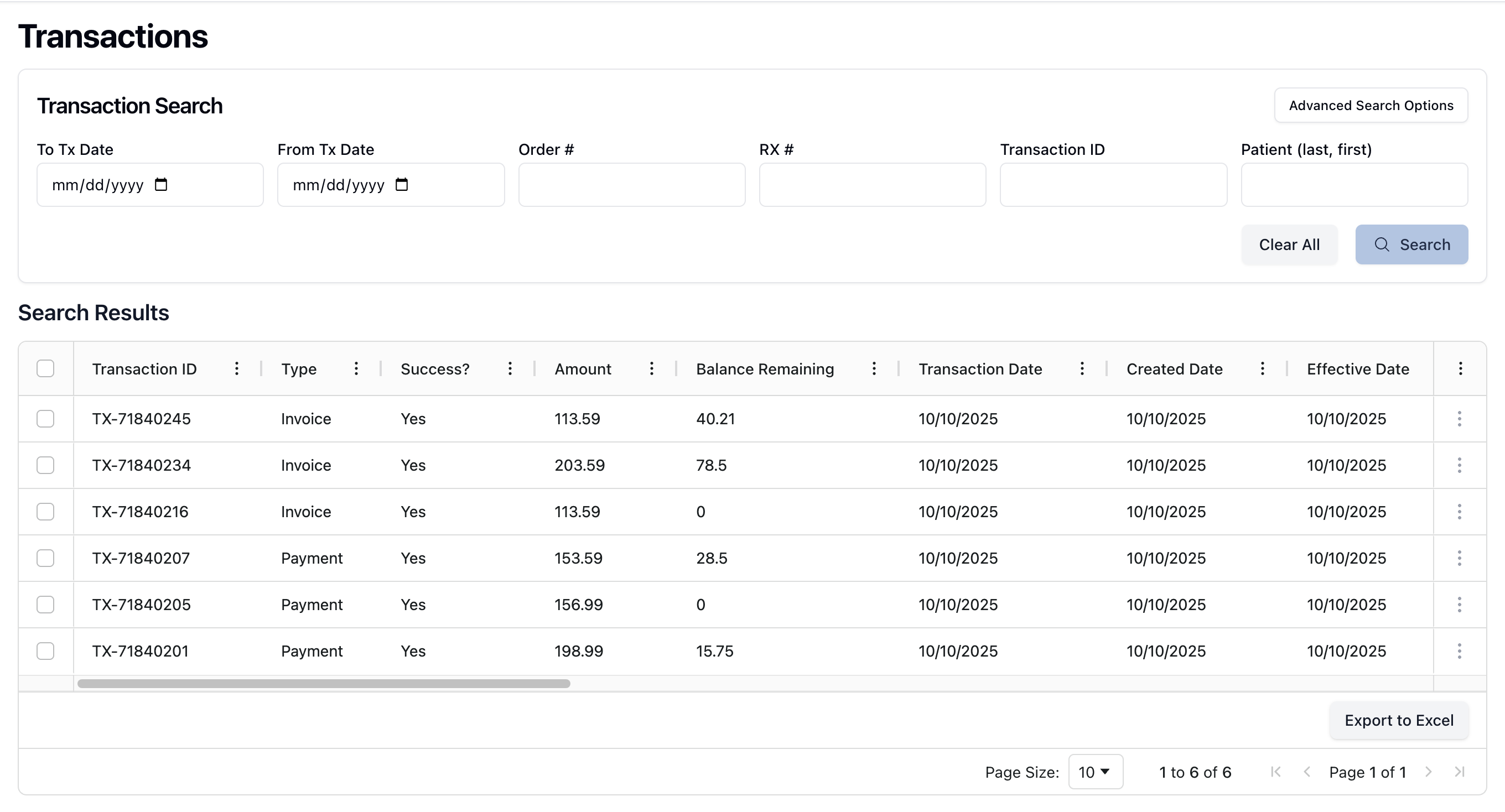 Added a Payment at Pickup field to the Orders queues, including transaction updates for prescriptions purchased at pickup.