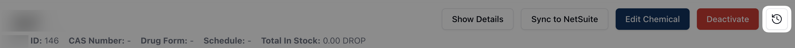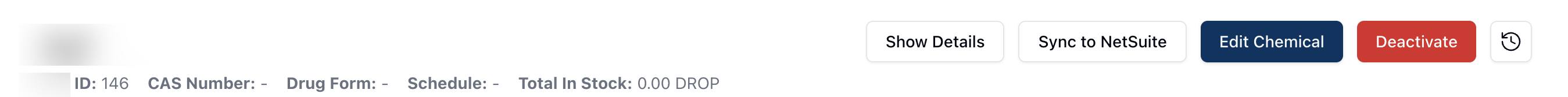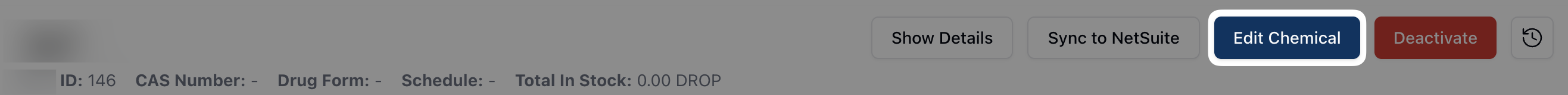 To the right of the chemical name, the following buttons appear: Show Details, Edit Chemical, Deactivate, and Activity Log.