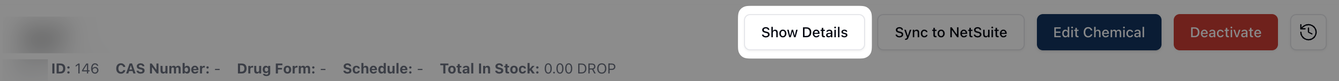 The Show Details button displays additional information related to the chemical record. This information includes: