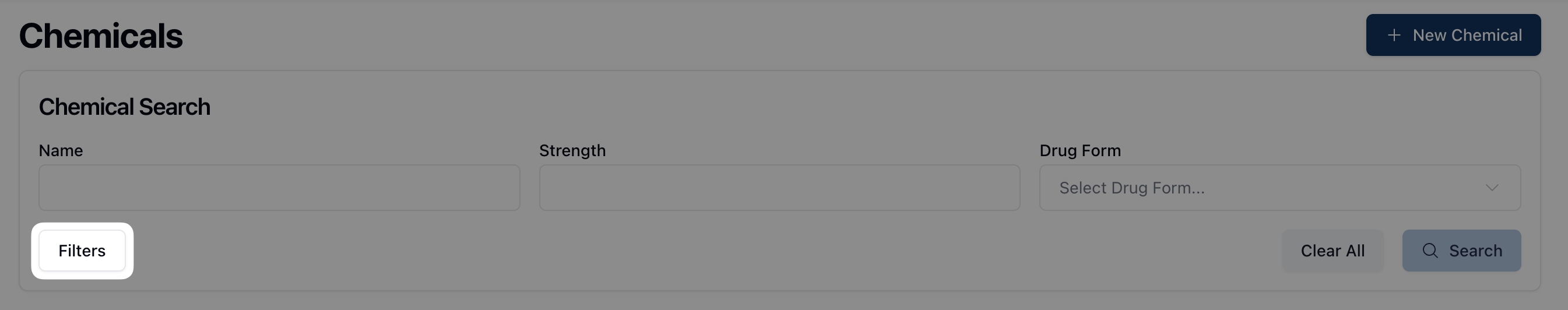 It's also possible to include deactivated chemicals in the search results by clicking on the Filters button and selecting the appropriate option from the dropdown.