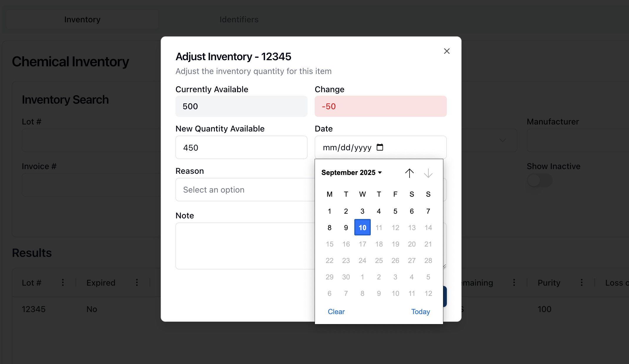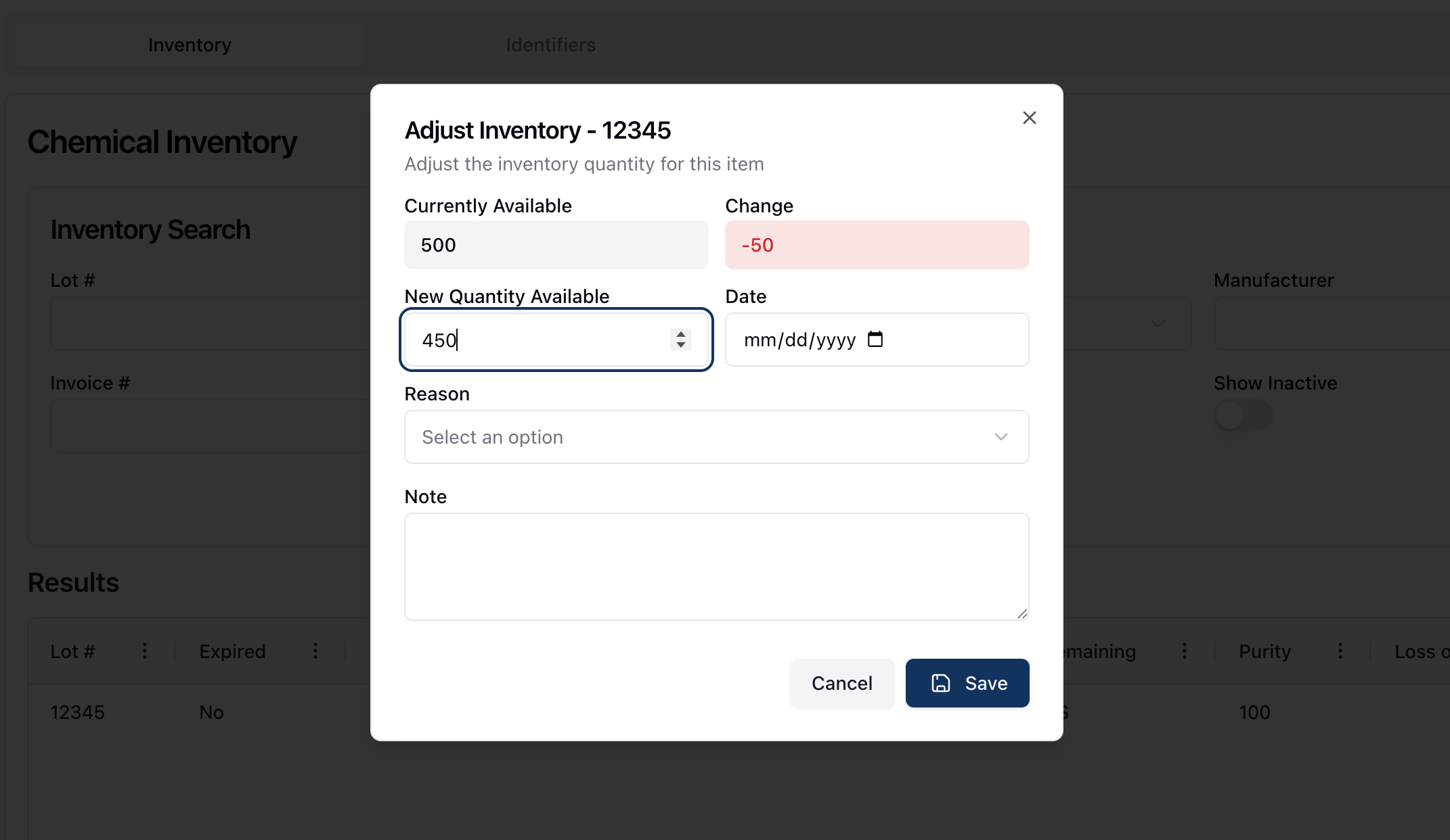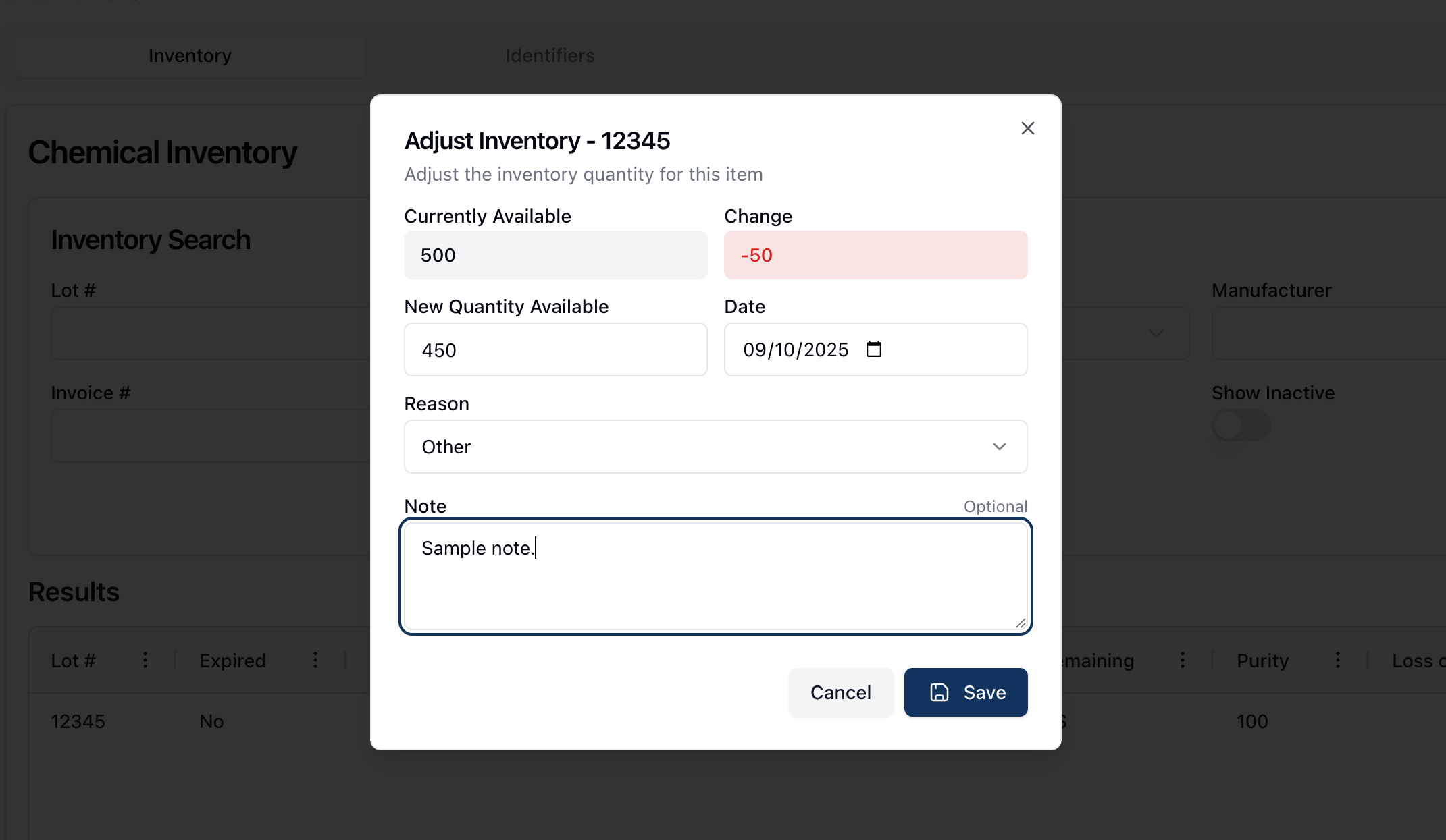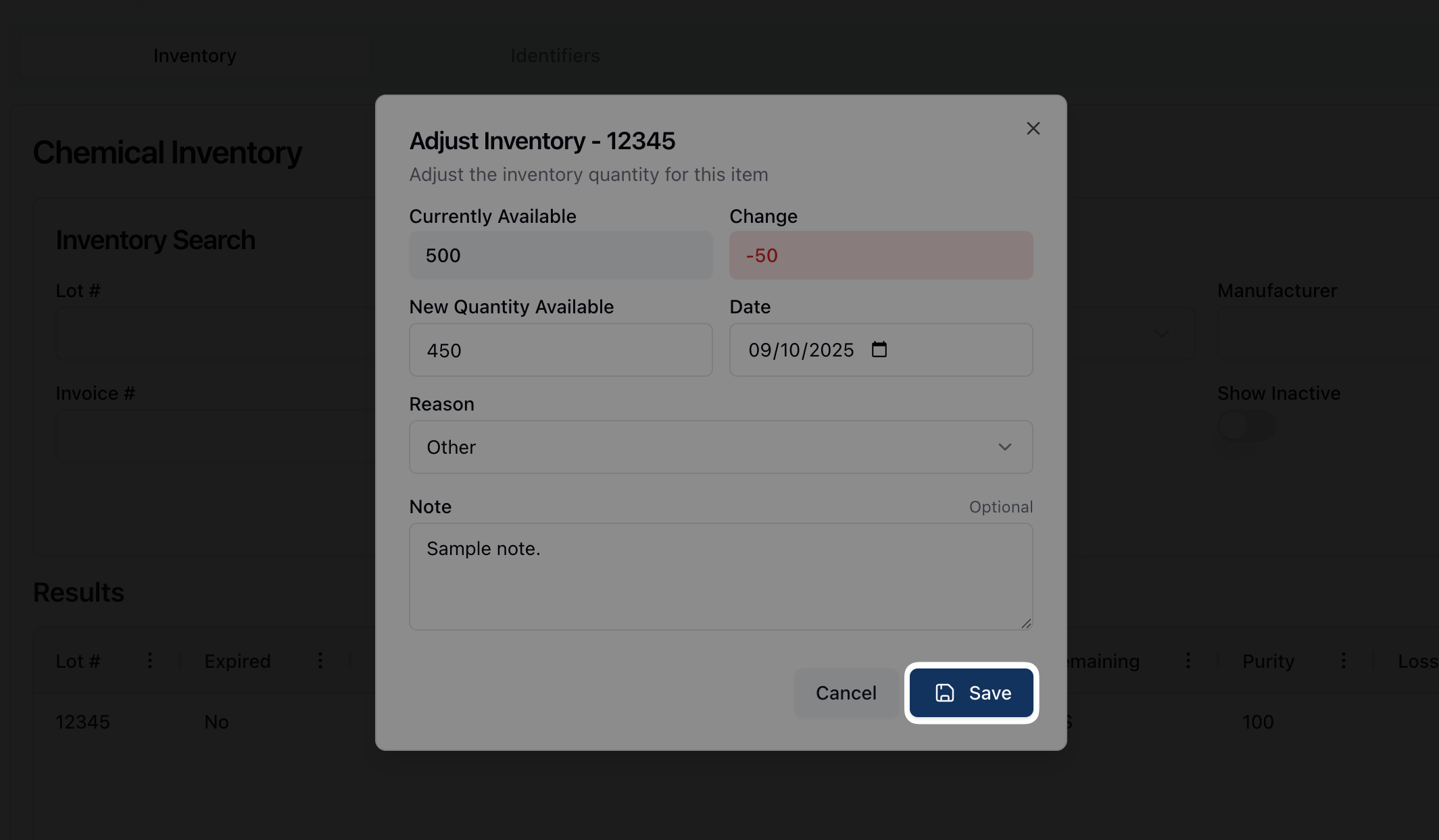 How-to: Adjusting a chemical inventory record