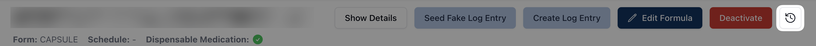 To deactivate a formula record, click the Deactivate button in the upper right corner of the page. When a formula is deactivated, both the table view on the Formulas page and the details of the formula record indicate that the formula is no longer active.