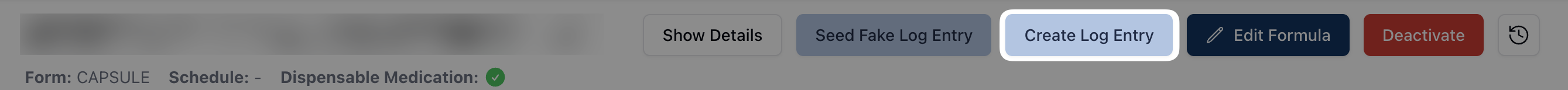 The Create Log Entry button allows you to create and track a new formula lot. Clicking this button opens a popup, requesting the following information: