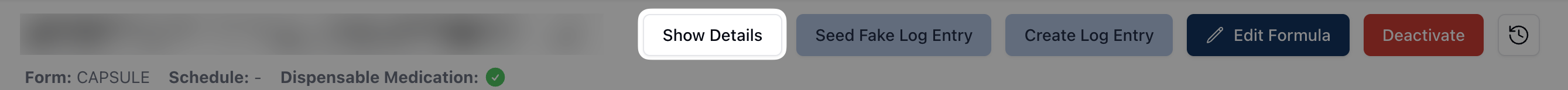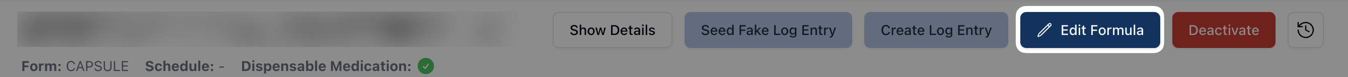 To the right of the formula name, the following buttons appear: Show Details, Create Log Entry, Edit Formula, Deactivate, and Activity Log.