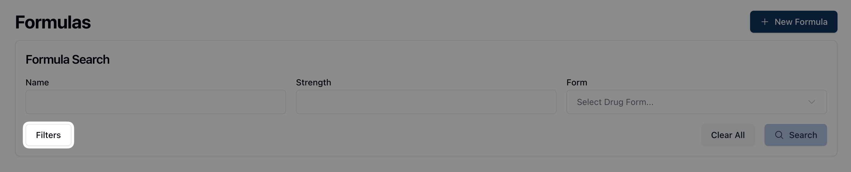 It's also possible to include inactive or deactivated formulas in the search results by clicking on the Filters button and selecting the appropriate option from the dropdown menu.