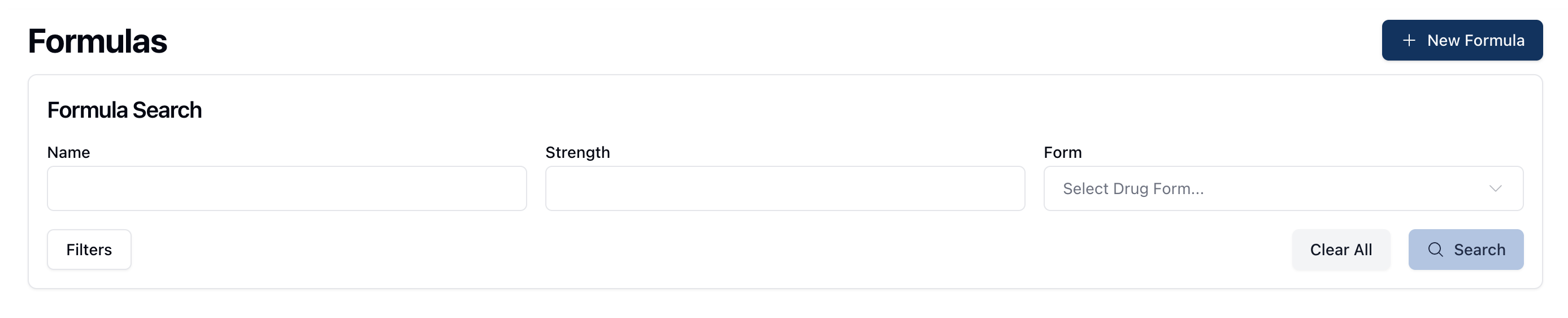 The Formula Search section includes a handful of fields that allow you to filter which formulas appear in the results below. These fields include: