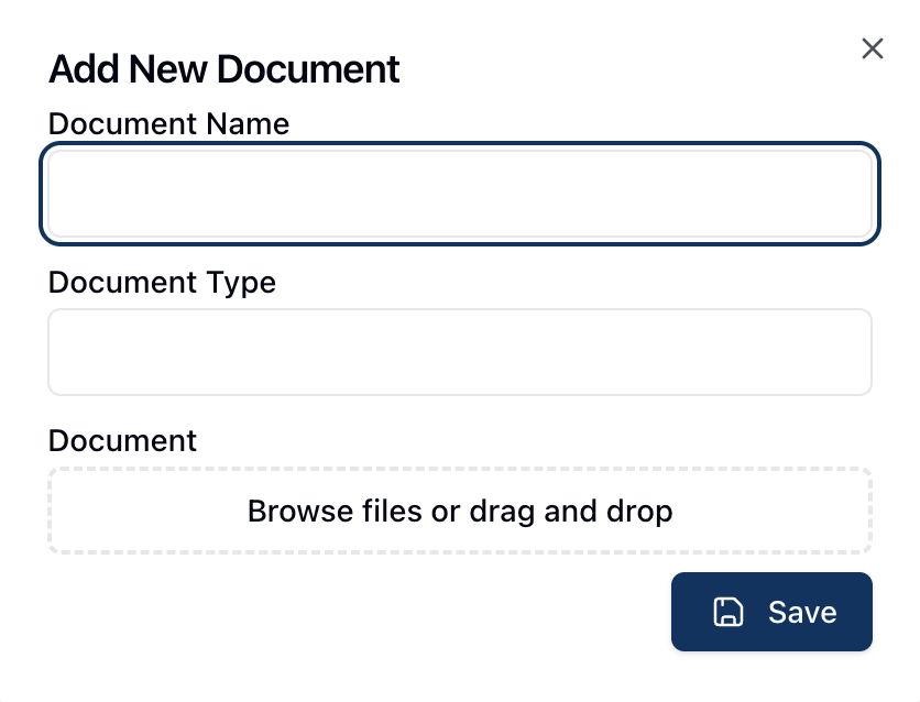 In the popup that appears, fill out all relevant fields, including the Document Name and the Document Type.