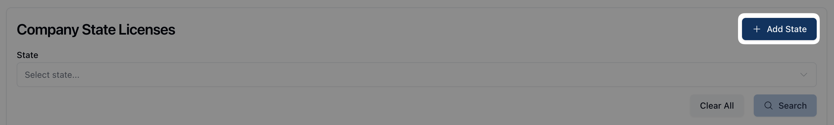 To add a state license to the company profile, click the + Add State button in the upper right corner of the page.