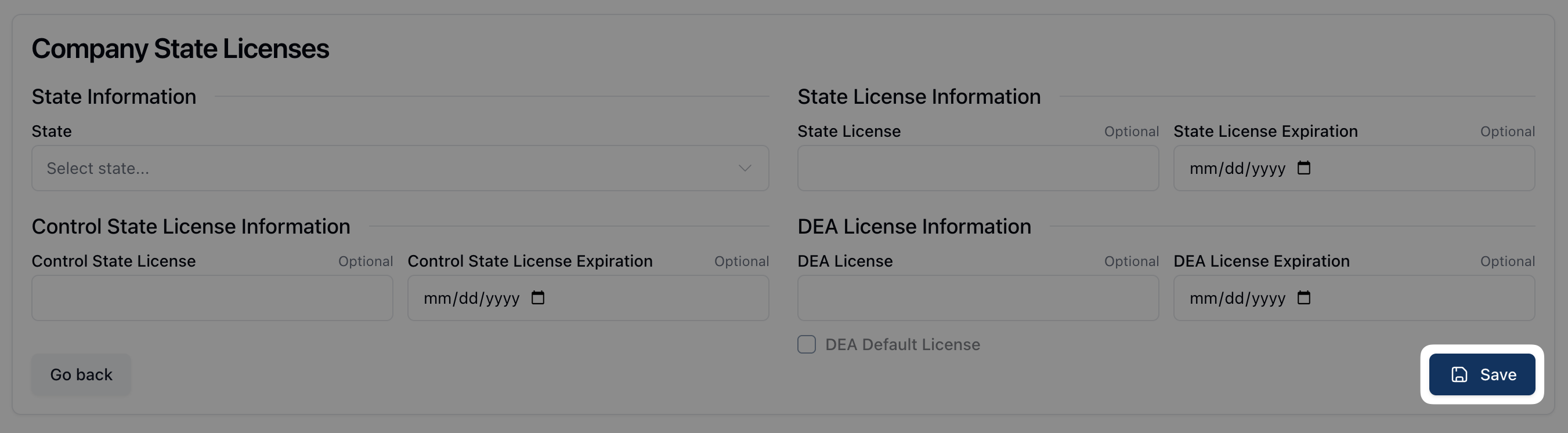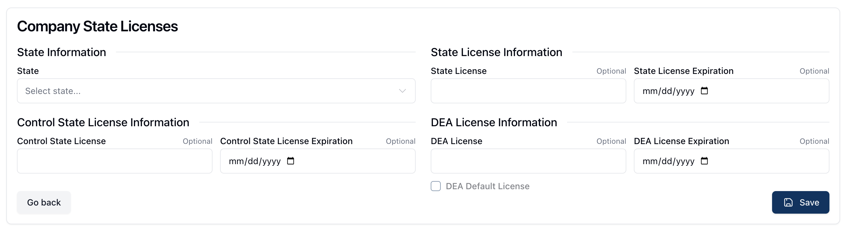 Once you select the state, enter all relevant information related to the license(s) for that state. This may include all or some of the following:
