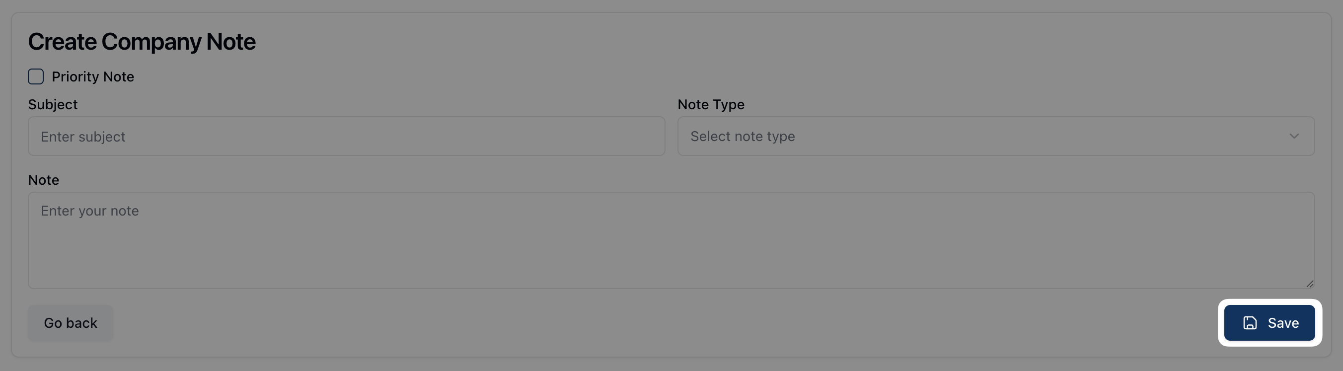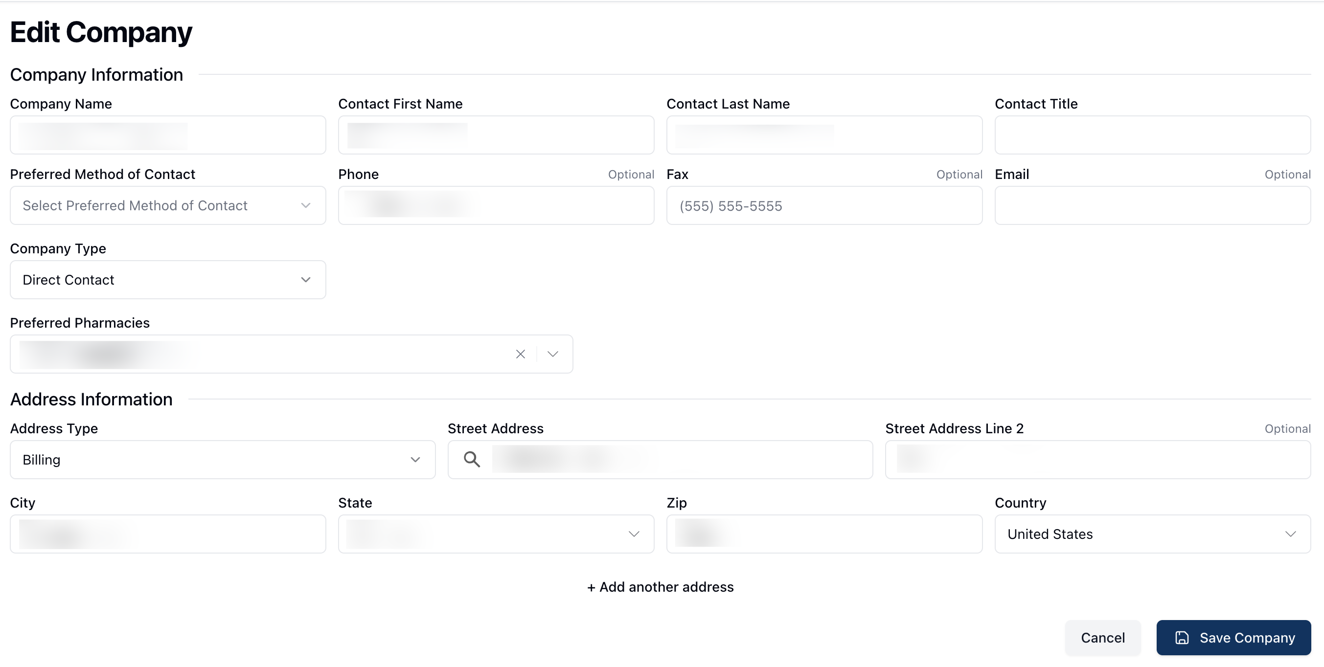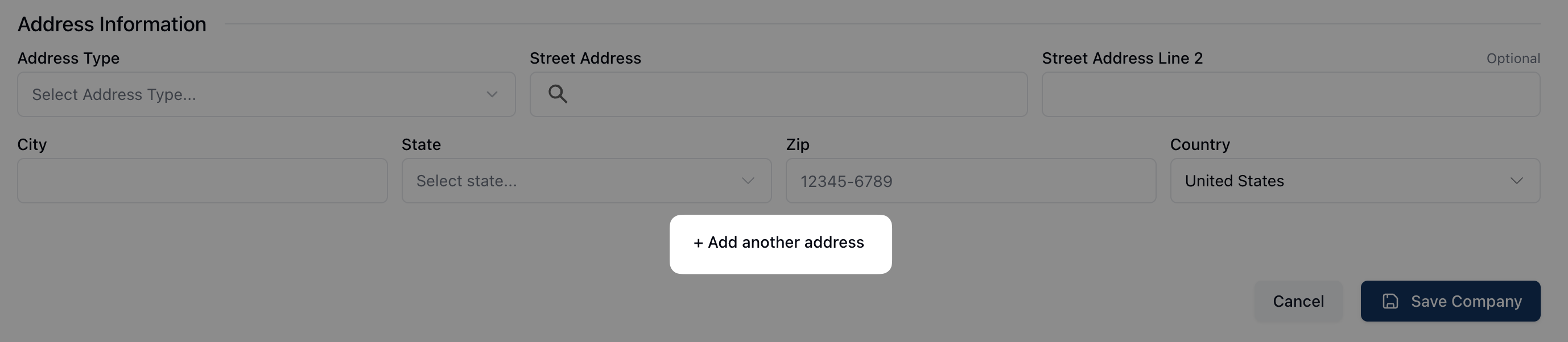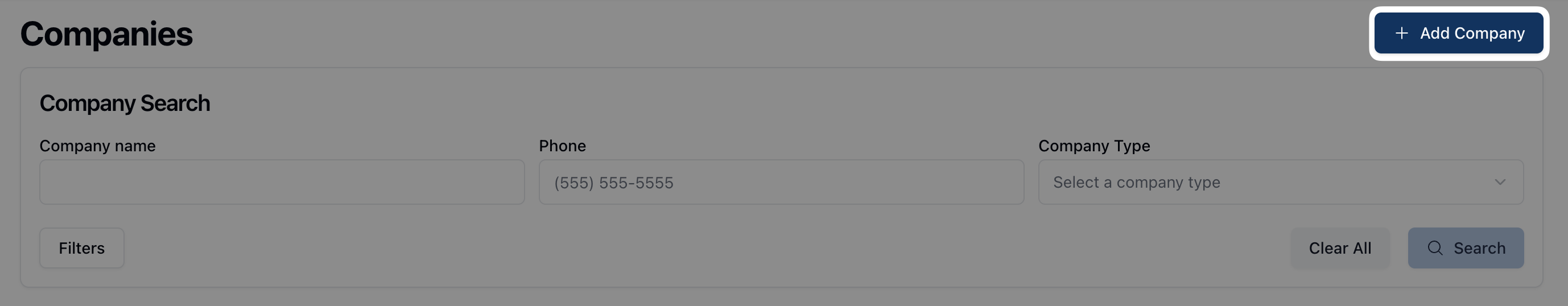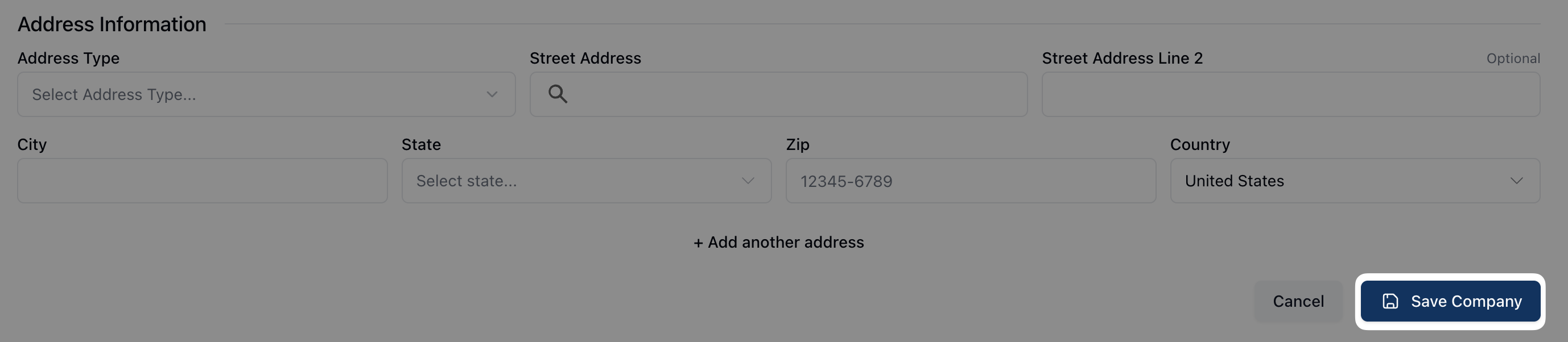 Once all fields are complete, click the Save Company button to add the company to the system.