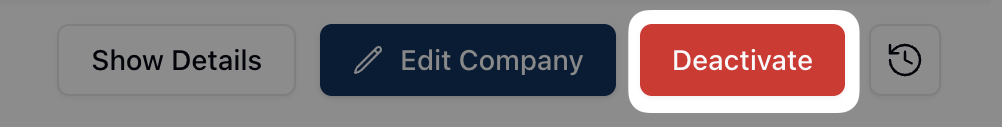 To deactivate a company record, click the red Deactivate button in the upper right corner of the page.