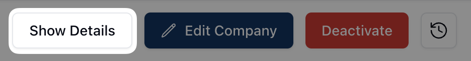 To the right of the company information, you can find the Show Details, Edit Company, Deactivate, and Activity Log buttons.