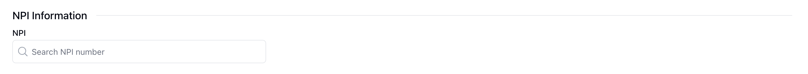 If the prescriber already exists in the system, such as with another company, you can search for their information using the search field below Prescriber Information. If this is a new prescriber, skip to the NPI Information section.