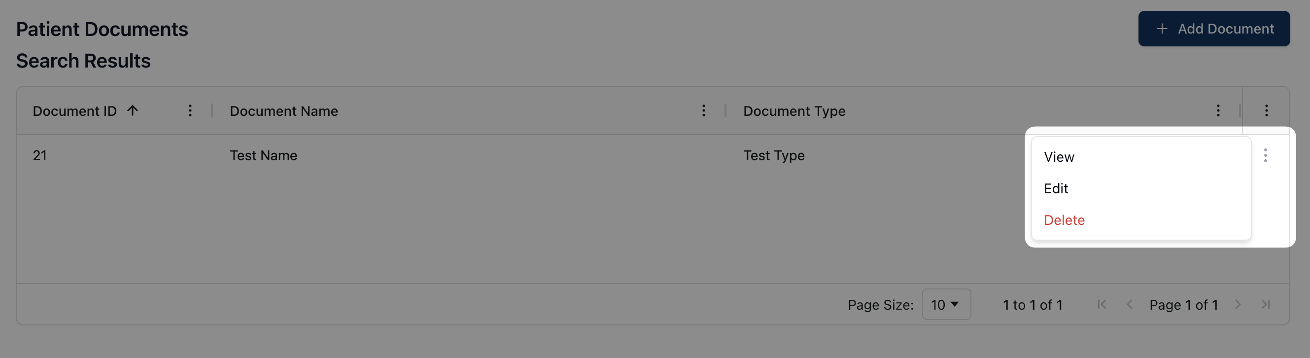 To view a patient document, open the actions menu next to the related item in the Patient Documents table. The actions menu includes the following options:
