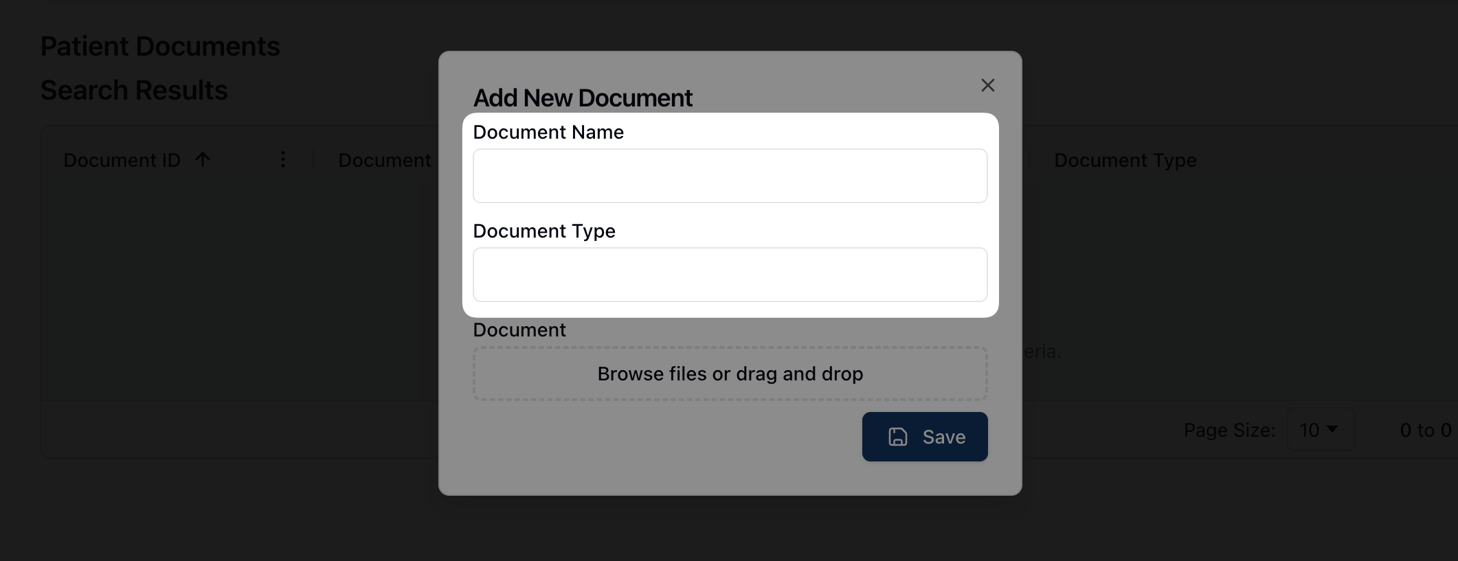 On the patient record, navigate to the Documents tab and click the + Add Document button.