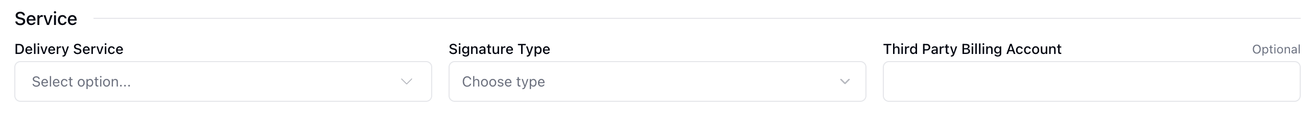 Select the patient's preferred delivery service and signature type from the dropdown menu below each field.