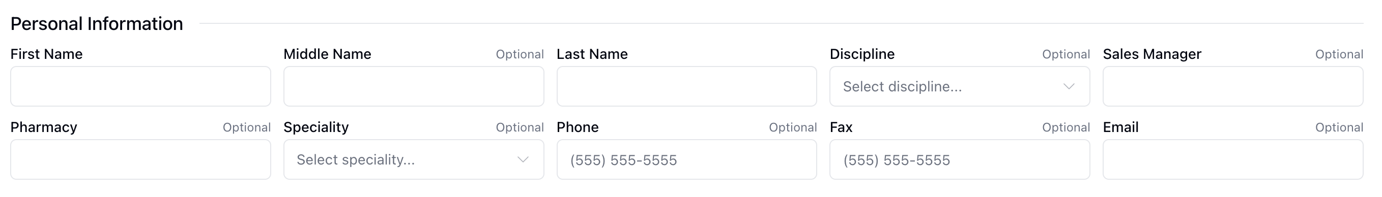 Fill out the prescriber’s Personal Information, including their name, contact information, and areas of expertise, if available.