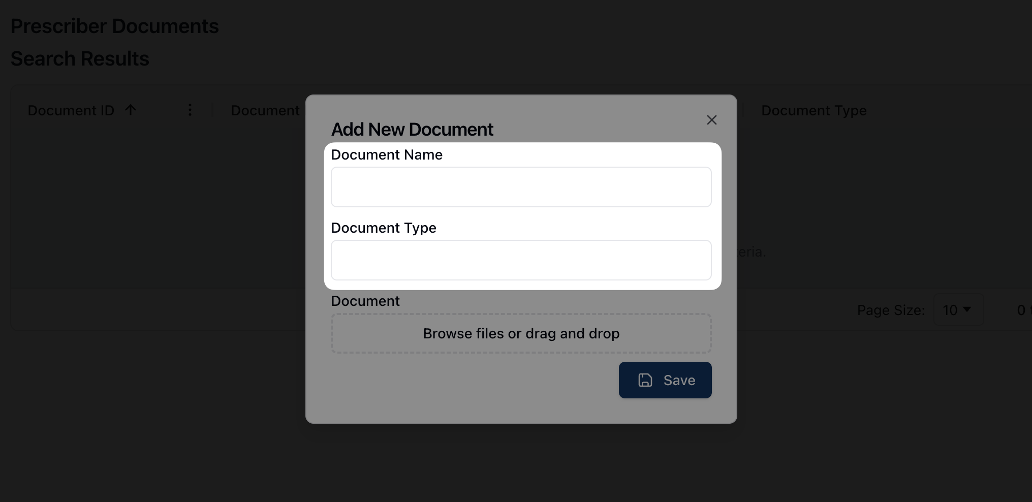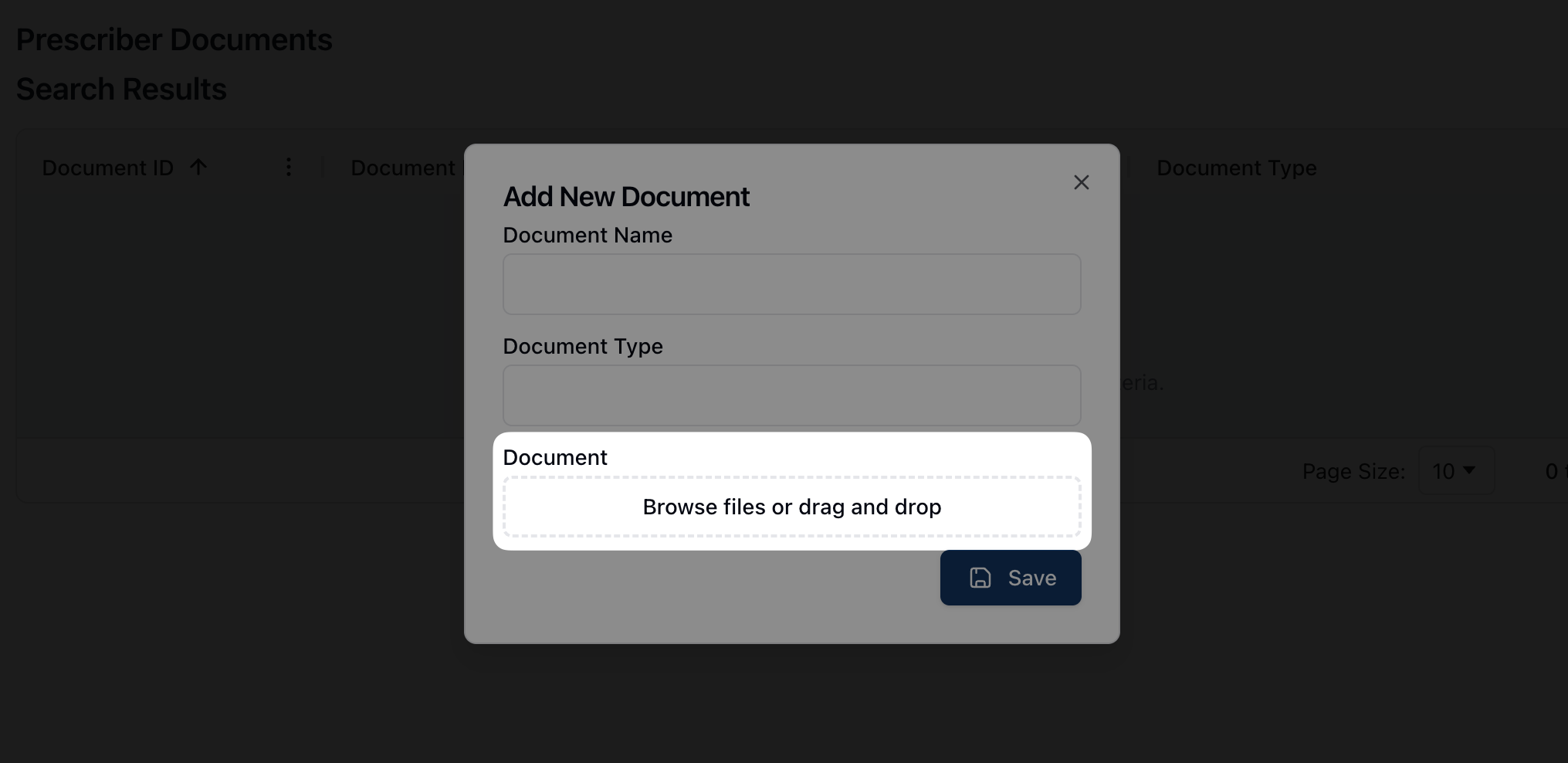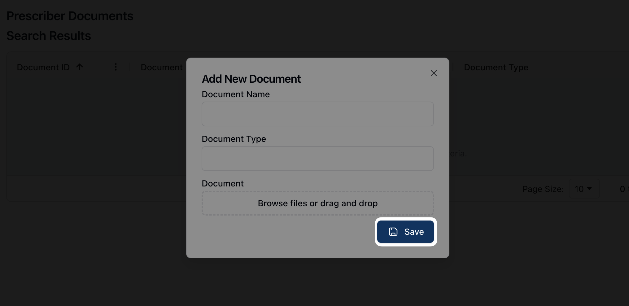 Once complete, click the Save button to upload the document to the prescriber profile.